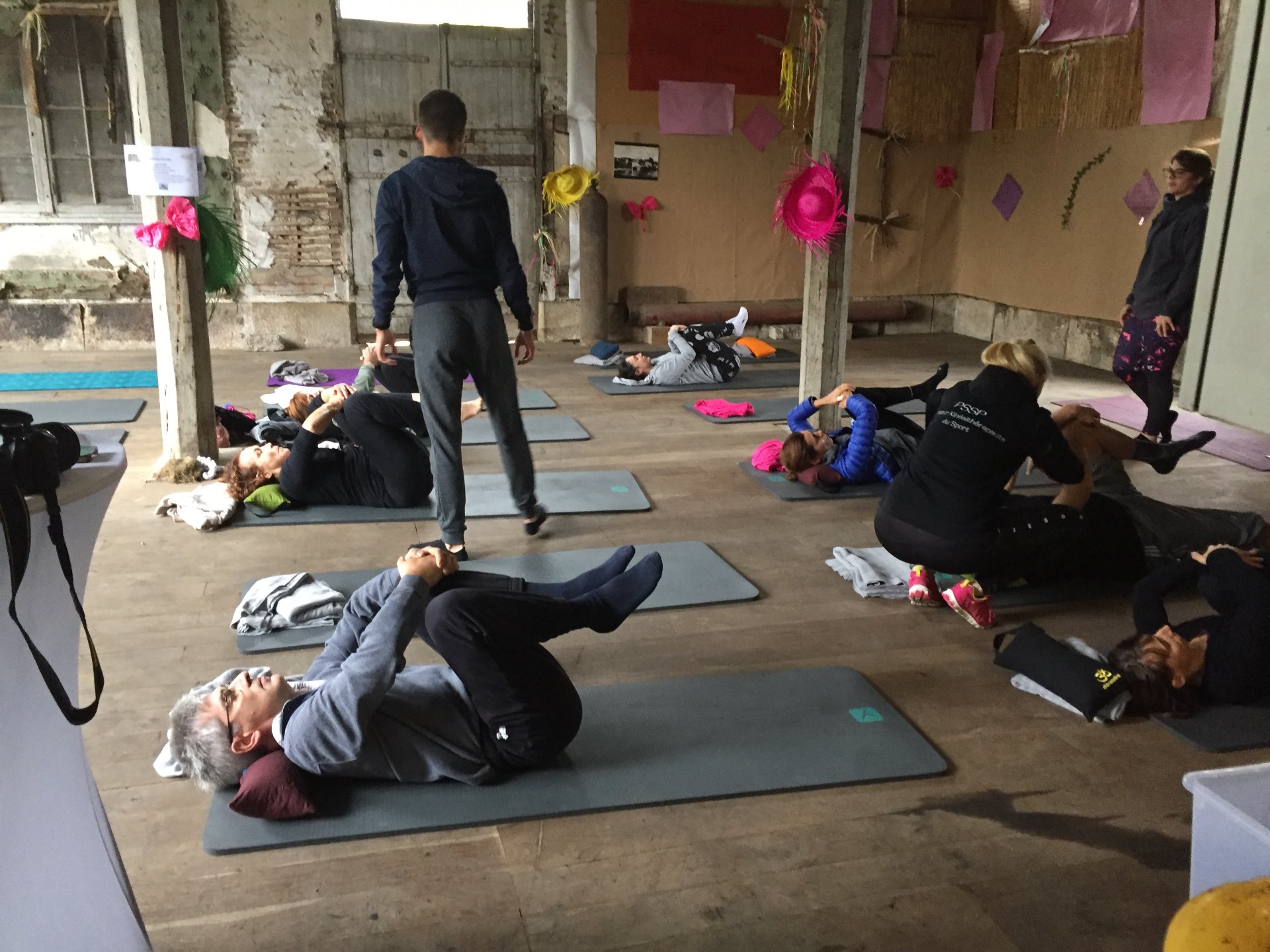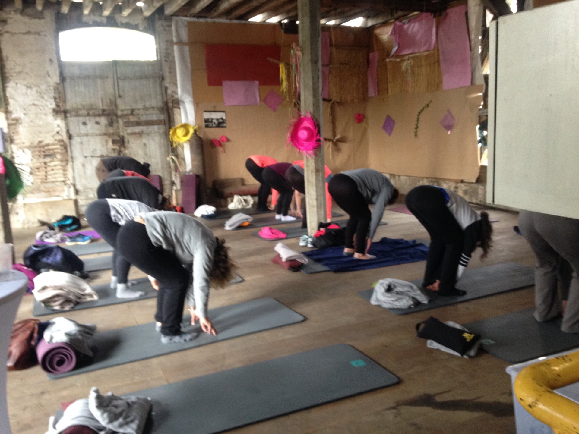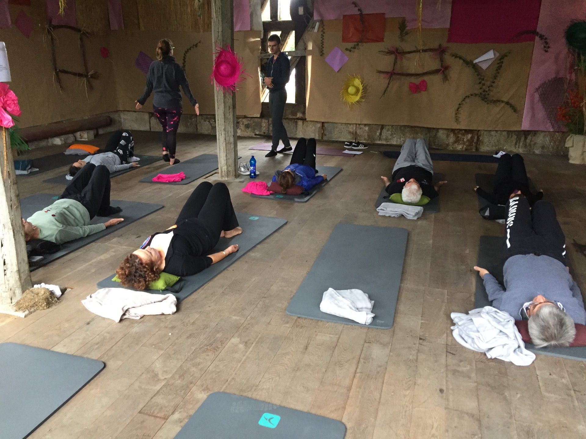 La pluie s'est invitée, la terrasse ressemble à une piscine, qu'à cela ne tienne, les 2 séances auront lieu à l'intérieur sur le plancher ! Difficile le réveil pour certains !!